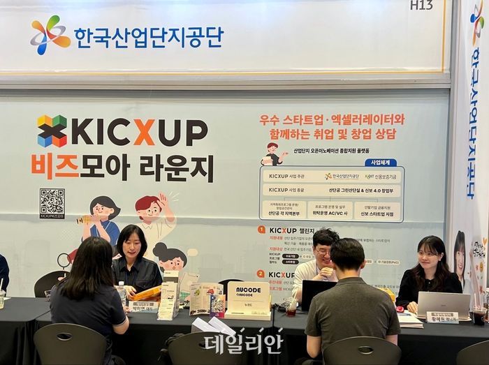 이날 산단공 홍보관(KICXUP 비즈모아 라운지)에서는 ▲산업단지 우수 스타트업 취업 멘토링 ▲스타트업 창업 현장 상담 ▲인공지능(AI) 기반 스타트업 지원사업 연결 서비스 안내 및 회원가입 이벤트 등을 진행했다.