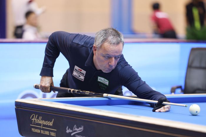 ‘2025 호치민 3쿠션 월드컵’ 정상을 차지한 딕 야스퍼스(네덜란드)가 신중하게 다음 샷을 준비하고 있다.