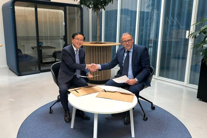 강영구 (왼쪽) 한국화재보험협회 이사장이 예스퍼디틀레프(Jesper Ditlev) DBI CEO와 업무협약 후 기념촬영을 하고 있다. ⓒ한국화재보험협회