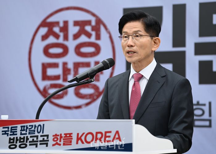 김문수 국민의힘 대선 후보가 27일 서울 여의도 중앙당사에서 열린 '국토 판갈이 : 방방곡곡 핫플 KOREA - 새롭게 대한민국' 공약을 발표하고 있다.ⓒ데일리안 방규현 기자
