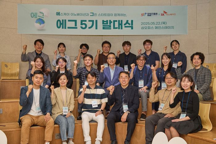 SK이노베이션은 최근 서울 성동구 심오피스에서 에그 5기 발대식을 개최했다고 28일 밝혔다. ‘에그’는 ‘에’스케이(SK) 이노베이션과 ‘그’린 기술을 가진 벤처가 협업해 스타트업 생태계 조성에 힘쓴다는 뜻이다. 창업진흥원이 운영해온 ‘창업도약패키지 대기업 협업 프로그램’에 SK이노베이션이 참여했다.