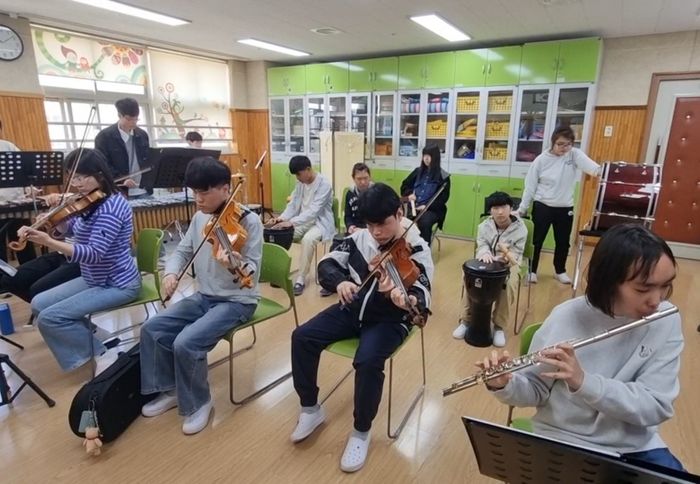28일 수원교육지원청에 따르면 이번 공연은 학생들의 음악 재능 발굴과 예술 특기 개발을 위한 예술 특화 교육과정의 일환으로 구성됐다. 외부 음악 강사와의 협업으로 교육과정과 연계한 정기적인 개별 지도 및 합주를 통해 연습을 이어왔다.