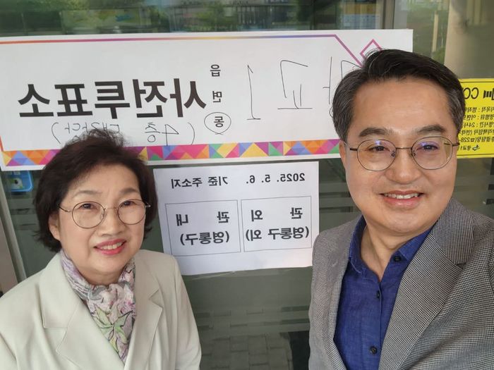 김동연 경기도지사가 29일 부인과 함께 사전투표장에서 기념촬영을 하고 있다.ⓒ