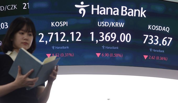 30일 서울 중구 하나은행 딜링룸 현황판에 코스피·코스닥 지수 등이 표시돼 있다. ⓒ뉴시스
