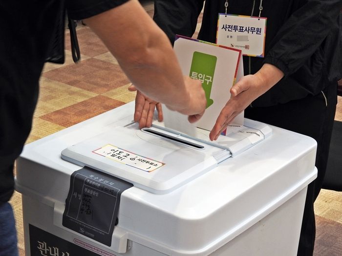 제21대 대통령 선거 사전투표 첫날인 지난 29일 오전 제주시청에 마련된 이도2동 사전투표소에서 주민이 투표용지를 기표함에 넣고 있다.ⓒ뉴시스