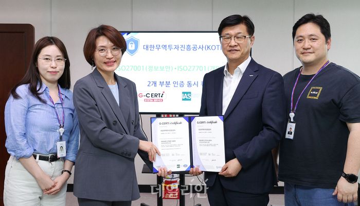대한무역투자진흥공사(KOTRA)가 국제표준 ISO27001(정보보안 경영시스템)과 ISO27701(개인정보보호 경영시스템) 인증을 동시에 획득했다고 2일 발표했다.