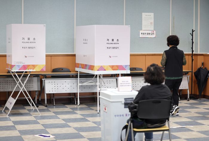 제 21대 대통령선거 투표일인 3일 오후 울산 중구 외솔기념관에 마련된 병영2동 제4투표소에서 한 유권자가 기표소로 이동하고 있다. ⓒ연합뉴스