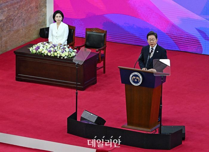 이재명 대통령이 4일 서울 여의도 국회 로텐더홀에서 열린 제21대 대통령 취임선서식에서 국민께 드리는 말씀을 하고 있다.ⓒ뉴시스