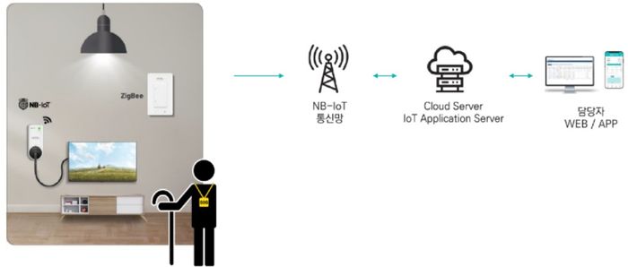 대상자의 가정에는 화장실 스위치를 스마트 돌봄 스위치로 교체하고, 협대역 사물인터넷(NB-IoT) 통신망을 기반으로 작동하는 사물인터넷(IoT) 콘센트를 함께 설치한다. 협대역 사물인터넷(NB-IoT)은 별도의 인터넷망 없이 작동하기 때문에 인터넷망이 설치되지 않은 독거 어르신 가정에도 쉽게 설치할 수 있다. 콘센트에 연결된 가전제품의 전력 사용량과 빈도를 분석해 생활 유형을 이중으로 확인할 수 있다.