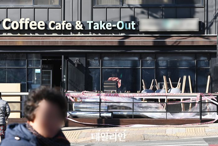 경기도 수원시 한 폐업한 카페 매장 앞에 테이블과 의자 등이 쌓여 있다.ⓒ뉴시스