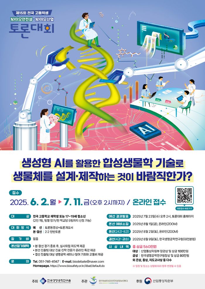 올해 토론대회의 논제는 ‘생성형 인공지능(AI)을 활용한 합성생물학 기술로 생물체를 설계·제작하는 것이 바람직한가?’이다.