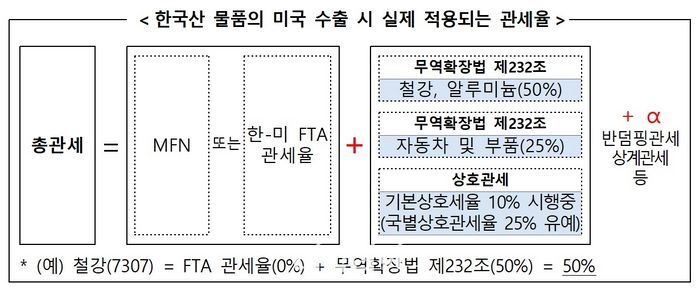 한국산 물품의 미국 수출 시 실제 적용되는 관세율.ⓒ관세청