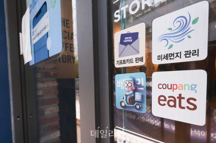 한 가게에 배달앱 안내문이 붙어있다. ⓒ뉴시스