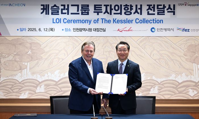 인천경제자유구역청은 케슬러 컬렉션의 리처드 케슬러 회장이 인천시청을 방문해 유정복 인천시장에게 투자의향서(LOI)를 제출했다고 12일 밝혔다.