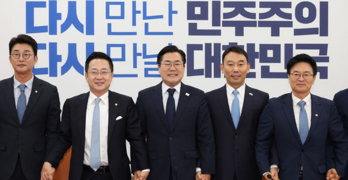 그러면서 "민주당은 이제 이재명 대통령을 보유한 책임 있는 집권여당이 됐다"며 "대한민국을 또 한 번 지켜낸 위대한 국민과 함께 내란 종식과 민생 회복, 경제 성장과 국민통합이라는 국가적 과제를 완수해 가야 한다. 내일 새로 선출되는 민주당 제2기 원내대표단이 온 힘을 다해 주실 것이라 믿는다"고 말했다.