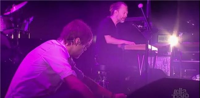2016년 미국 시카고 롤러팔루자 페스티벌 무대에서 ‘Everything…’을 라디오헤드의 에드 오브라이언(왼쪽)과 톰 요크(오른쪽)이 ‘Everything in Its Right Place’를 연주한 모습. ⓒ유튜브 캡처