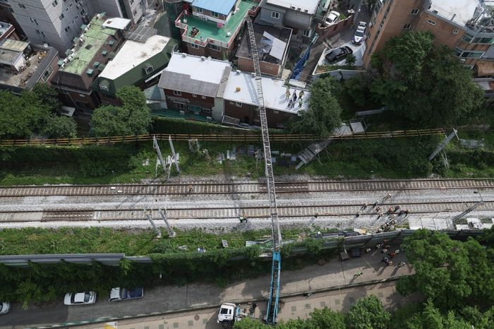 인명피해는 없었으나 사다리가 선로 건너편 건물 지붕까지 걸쳐져 소방당국이 정확한 피해 규모를 조사 중이다.