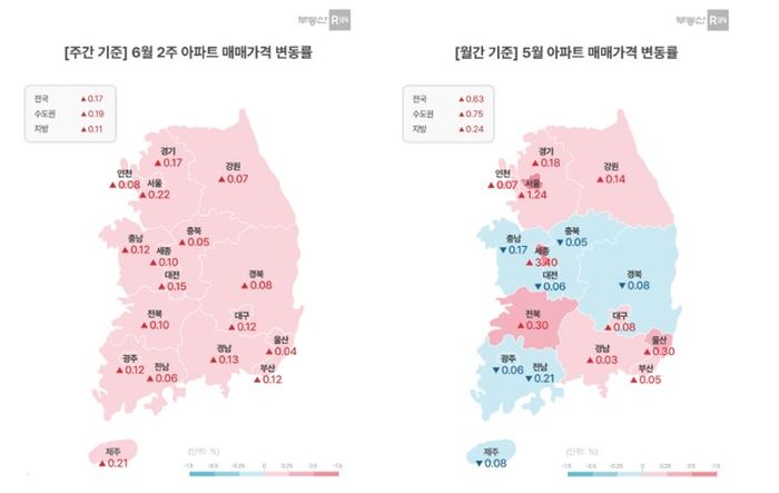 6월 2주에는 서울 등 수도권뿐 아니라 전국의 모든 지역에서 아파트값이 상승한 것으로 나타났다.