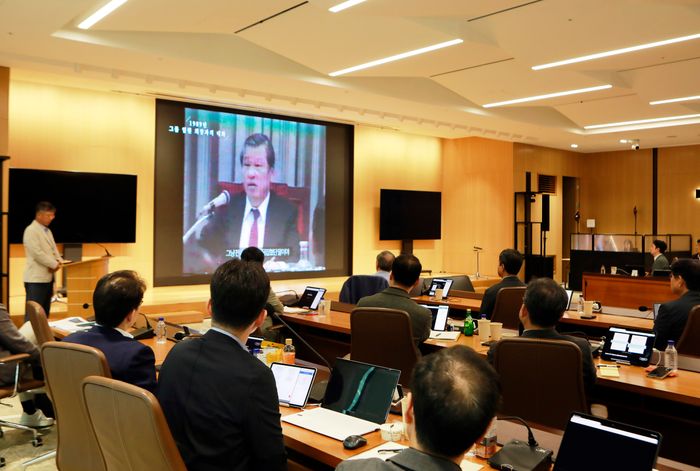 2025 SK 경영전략회의에 참여한 SK 경영진이 최종현 선대회장의 육성을 듣고 있다. ⓒSK