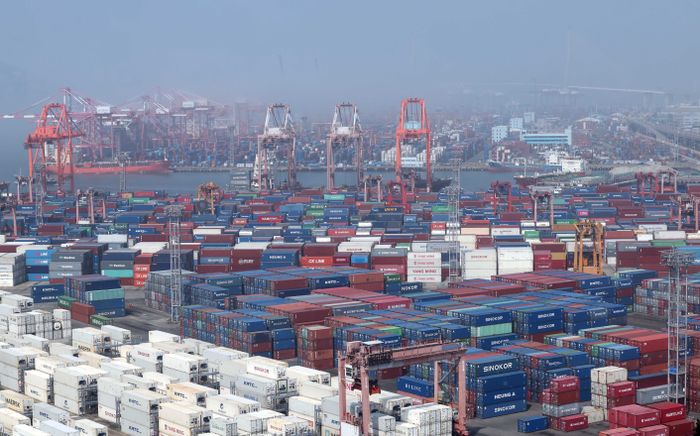 지난 10일 부산 남구 신선대 및 감만 부두 야적장에 수출입 컨테이너가 쌓여 있다.ⓒ뉴시스