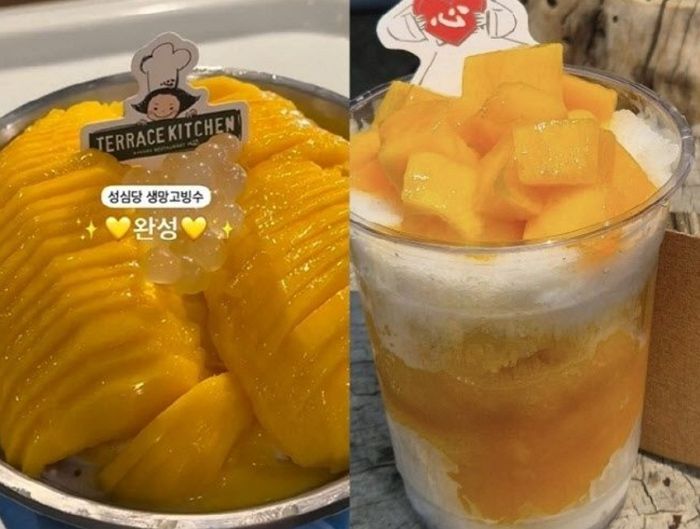 이 빙수는 생망고를 가득 올렸으며, 맛도 좋아 호평을 받고 있다.