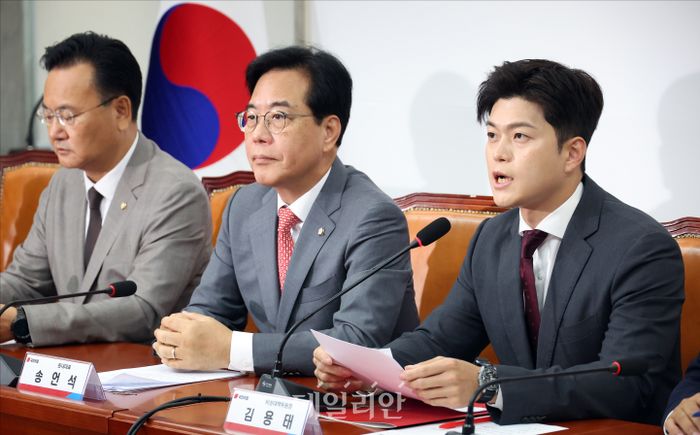 김용태 국민의힘 비상대책위원장이 19일 오전 서울 여의도 국회에서 열린 국민의힘 '비리백화점 이재명 정부 인사청문회 대책회의'에서 모두발언을 하고 있다.