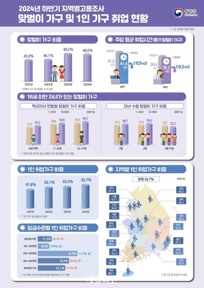 2024년 하반기 지역별고용조사 맞벌이 가구 및 1인 가구 취업 현황.ⓒ통계청