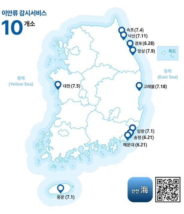 안전정보는 소방, 해경 등 관계기관과 해수욕장 관할 지자체 관계자에게 전용 플랫폼을 통해 실시간으로 제공되며 일반 국민은 모바일 앱 ‘안전해(海)’와 국립해양조사원 누리집에서 확인할 수 있다.
