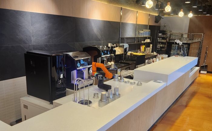 로봇은 한화로보틱스 로봇 HCR-3A를 사용해 로봇 암이 커피머신과 자동 연동돼 자추출 및 이동 과정 수행하도록 만들었다.