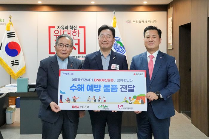 BNK부산은행은 강서구청 구청장실에서 '수해예방 물품 및 선풍기 지원 전달식'을 가졌다고 19일 밝혔다.