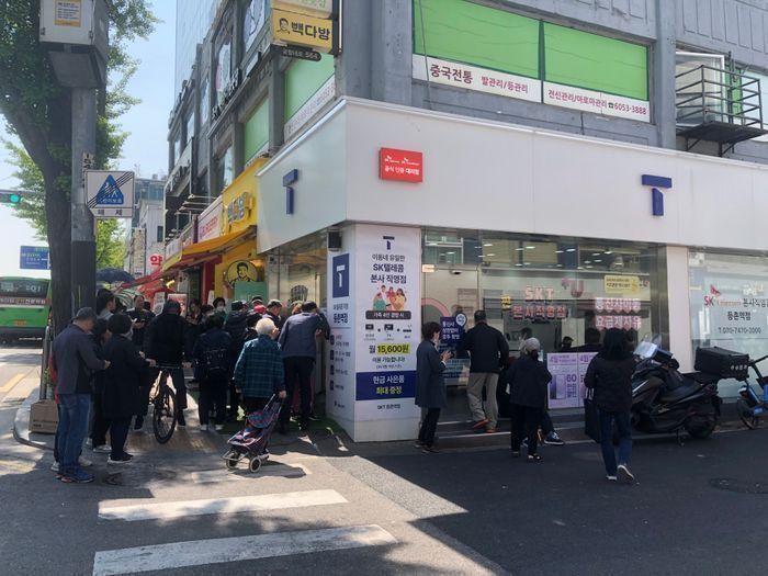 지난 4월 28일 서울 등촌동 SKT 직영점 앞에 유심칩을 교체하려는 고객들이 길게 줄지어 서있다. ⓒ데일리안 박영국 기자