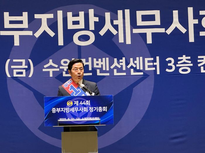 사진 1: 중부지방세무사회 정기총회에서 정견 발표 중인 구재이 회장 ⓒ데일리안