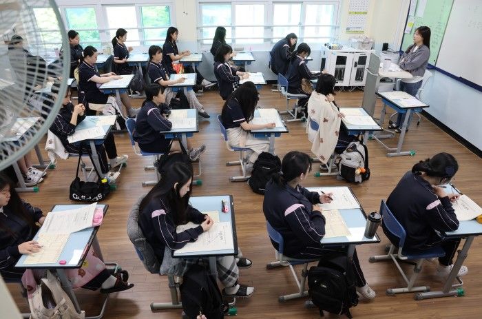 2026학년도 대학수학능력시험 6월 모의평가 시행일인 4일 오전 부산 사상구 주례여고 학생들이 시험을 준비하고 있다.ⓒ연합뉴스