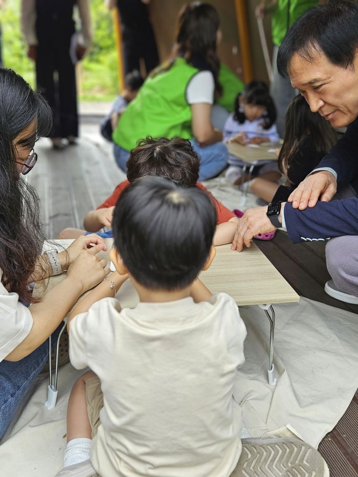 임태희 교육감이 김포교육지원청의 특색사업인 '생태환경교육' 현장에서 아이들의 모습을 보고 바라보고 있다. ⓒ경기도교육청 제공