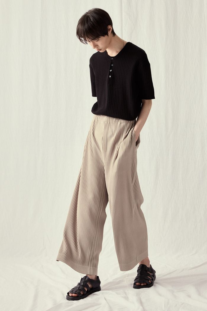플리츠는 일정 간격의 주름 디테일을 통해 볼륨감 있는 실루엣을 연출하며, 피부에 직접 닿는 면적을 줄여 뛰어난 통기성을 제공한다. 구김이 적고 형태 유지력이 뛰어나 일상복은 물론 오피스룩으로도 활용도가 높아, 과거 여성복 중심으로 소비되던 플리츠가 최근엔 남성복 전반으로 확대되고 있다.