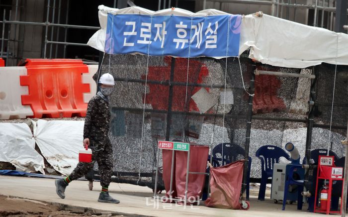건설현장에서 근로자가 음료를 들고 이동하고 있다. ⓒ뉴시스