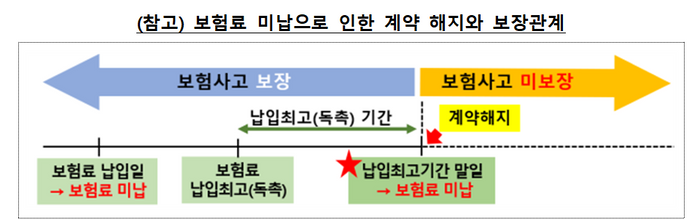 해당 기일 내에 보험료가 납부되지 않으면 보험계약이 해지로 보험사고 발생 시 미보장될 수 있다.