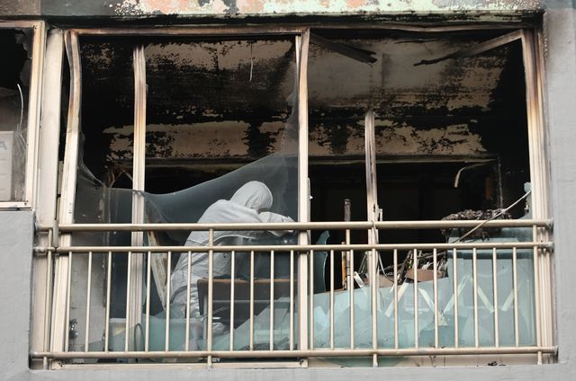 지난 24일 화재가 발생한 부산 부산진구의 한 아파트에서 경찰 등 관계기관의 합동 감식이 진행되고 있다.ⓒ연합뉴스