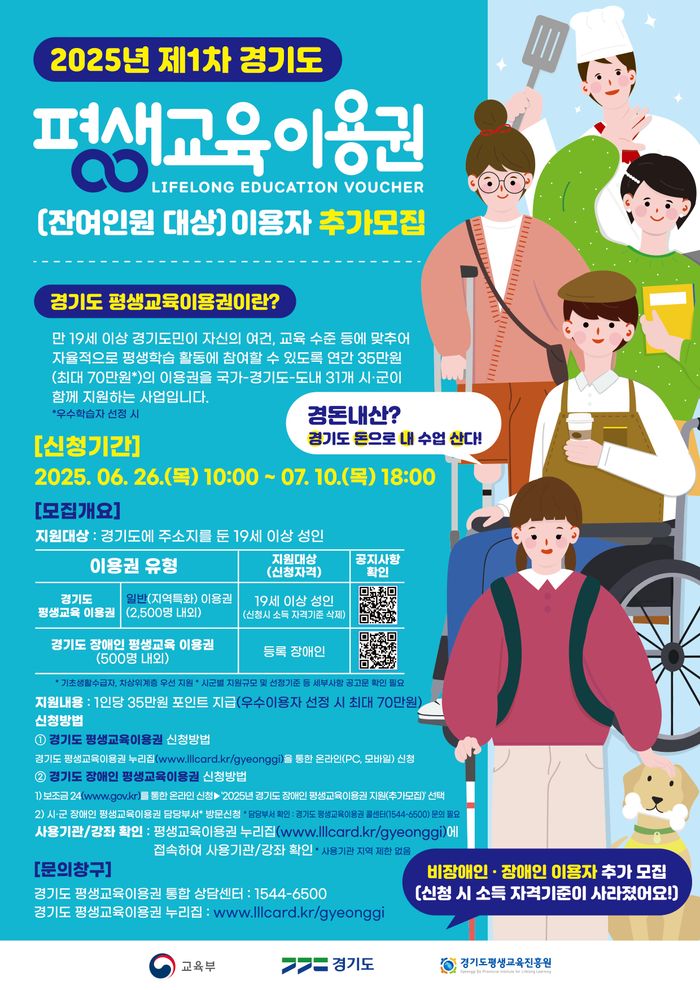 홍성덕 경기도 평생교육과장은 “더 많은 도민에게 학습 기회를 제공하고자 대상 범위를 확대했다”며 “많은 관심과 참여를 바란다”고 말했다.