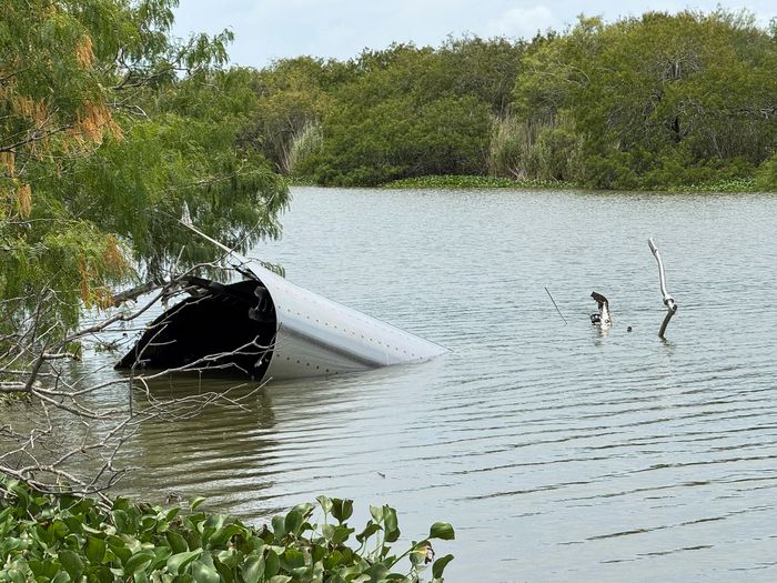 지난 19일(현지 시각) 미국 접경지인 멕시코 마타모로스 강에 떨어져 있는 스페이스X 로켓 잔해. ⓒ로이터, 연합뉴스