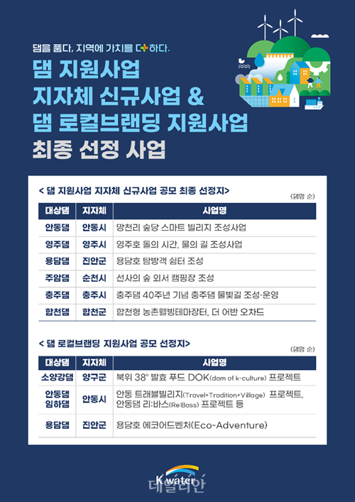 2025년 댐주변지역 지자체 지원사업 및 댐 로컬브랜딩 공모 최종 선정 사업 안내 포스터. ⓒ한국수자원공사