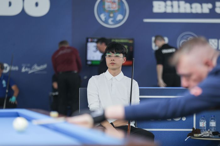 권미루(20, 부산당구연맹)가 포르투 3쿠션 월드컵 1차 예선(PPPQ라운드)에서 하칸 셀릭(덴마크)의 경기를 지켜보고 있다.