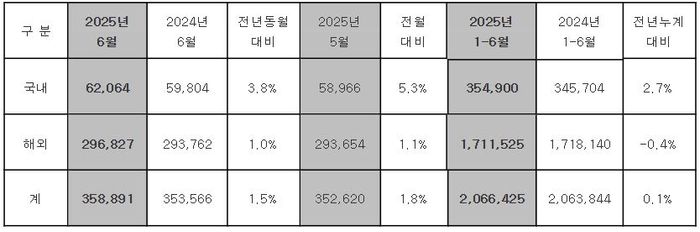 지난해 같은 기간과 비교해 국내 판매는 3.8% 증가, 해외 판매는 1.0% 증가한 것으로 집계됐다.