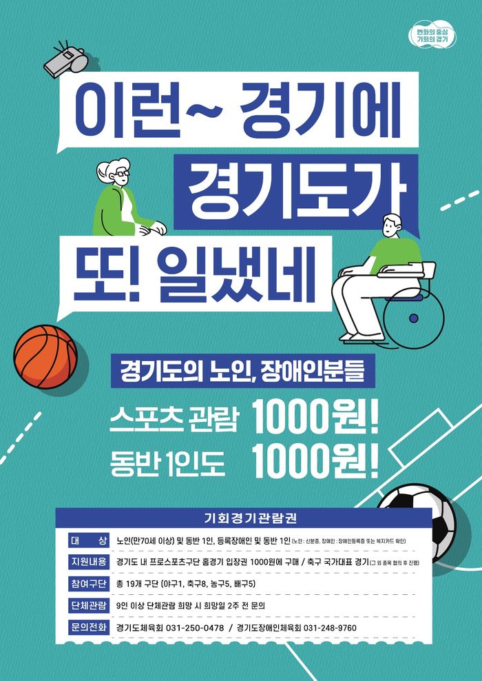 기회경기관람권은 스포츠 경기를 보다 많은 도민이 저렴한 비용으로 관람할 수 있도록 지원하는 정책이다. 70세 이상 노인과 동반 1인, 장애인과 동반 1인은 축구, 야구, 농구, 배구 종목의 19개 프로스포츠단 경기를 1000원에 관람할 수 있다. 좌석은 모두 3등급석이다.