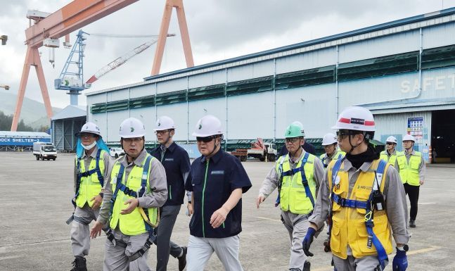 HD현대 권오갑 회장이 7일 필리핀 수빅 조선소 현장을 둘러보고 있다. ⓒHD현대