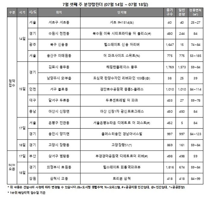 한편, 서울에서는 서초구 ‘서초 PH1514’(40가구), 용산구 ‘더 파크사이드 스위트’(775실) 등이 청약을 진행한다.