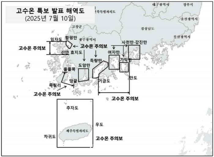 고수온 특보 발표 해역도.ⓒ국립수산과학원