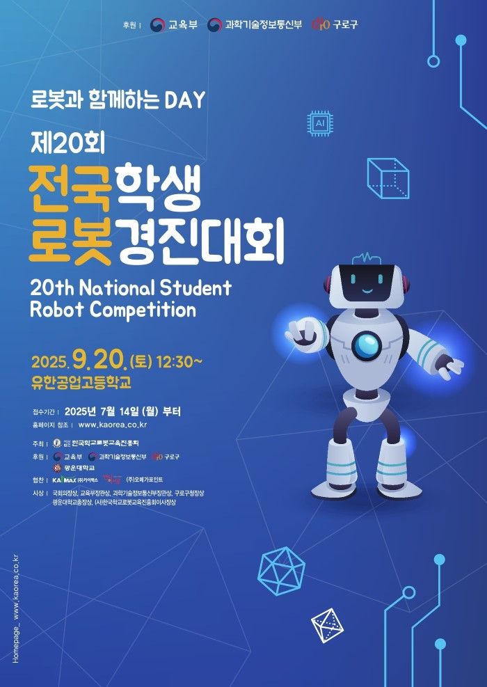 서울 구로구(구청장 장인홍)가 9월20일 유한공업고등학교에서 개최되는 '제20회 전국학생로봇경진대회'에 참여할 초·중·고등학생을 모집한다고 14일 밝혔다.
