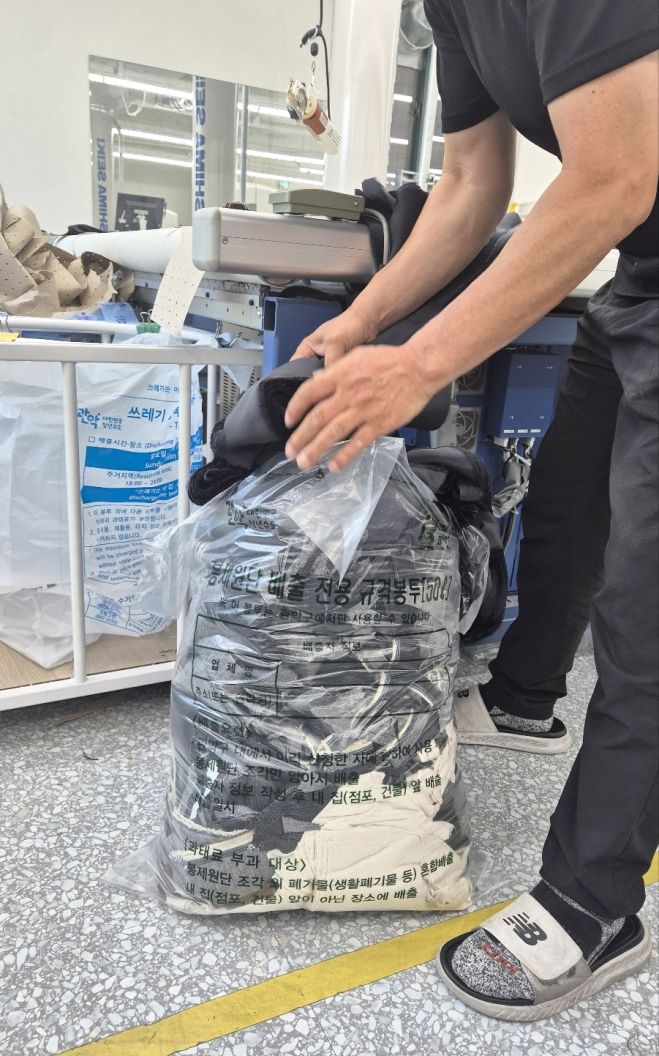 봉제업체가 매일 오후 6시부터 자정까지 봉제원단만 담은 전용봉투를 점포 앞에 내놓으면 청소대행업체가 다음날 수거한다. 수거된 폐기물은 1차 파쇄 등 중간 가공을 거쳐 고형연료로 재활용된다.