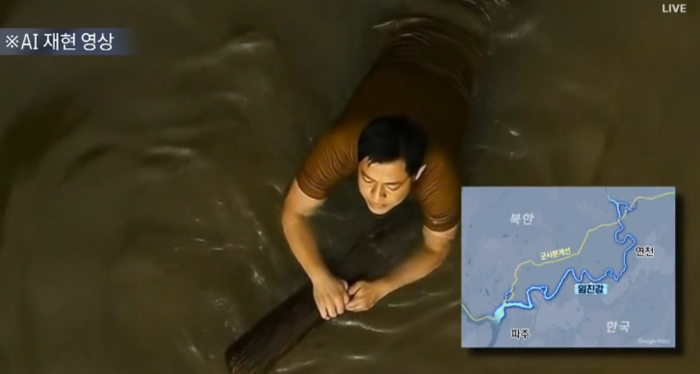 이 남성은 1m 수심의 얕은 하천에서 몸을 최대한 낮춘 채 좌우를 살피며 남쪽으로 이동했다고 한다.